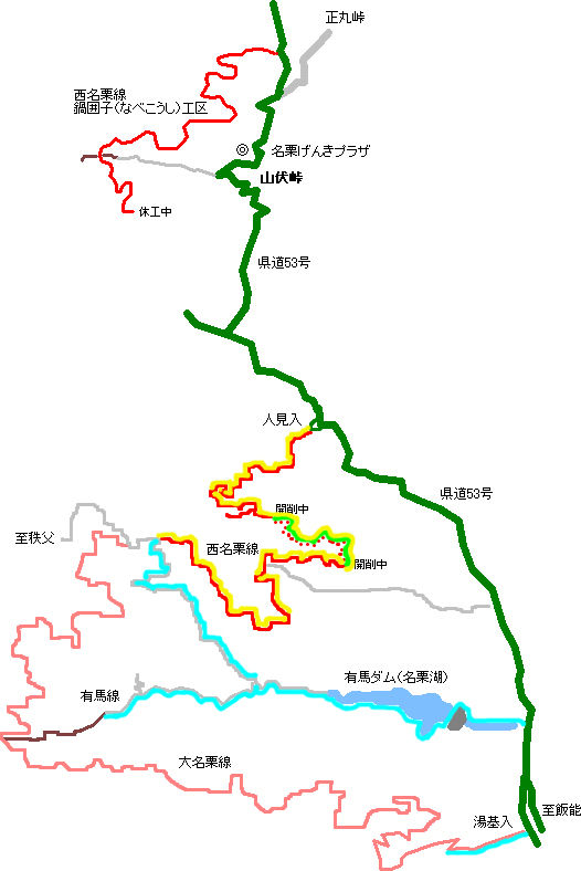 これから向かう先はけっこう雪で白い、、(たぶん大名栗線)